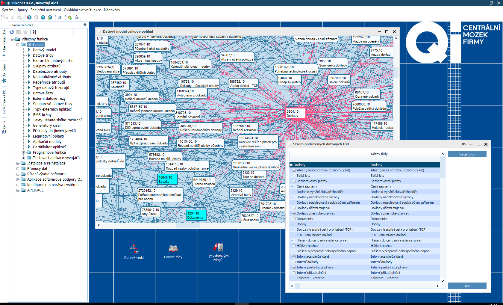 QI Builder jedinečný vývojový nástroj nové generace, který dokáže věrně objektově modelovat realitu, a to bez omezení. Jedná se o vlastní unikátní integrované prostředí, v němž je možné modifikovat informační systém QI podle specifických potřeb každého klienta. Díky němu lze také vyvíjet a upravovat databázové aplikace až 8x rychleji nežli pomocí všech v současnosti známých vývojových prostředků.